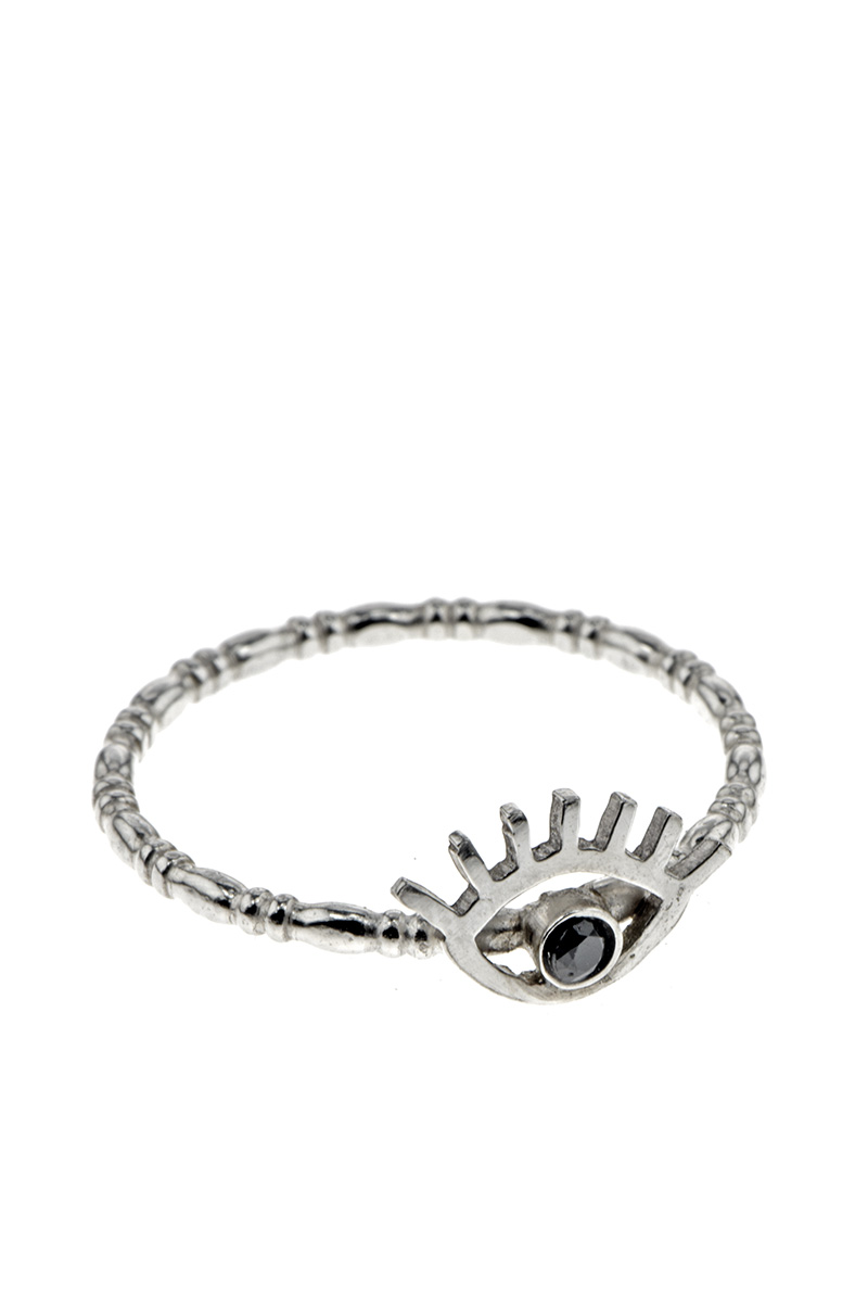 Fijne ring van eierdraad met een klein oogje van 10mm breed. In pupil van het oogje zit een briljant van cubic zirkoon. Bij de zilveren ring een zwart steentje, bij de vergulde een wit steentje.